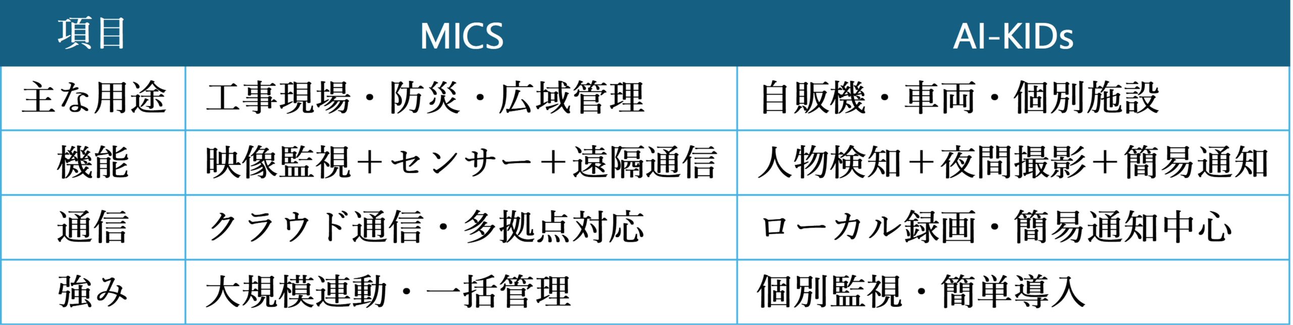 AI-KIDsはより「ピンポイント監視」に特化しています。