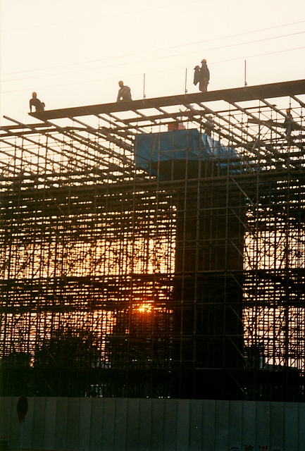 モノレール工事は、都市部で行われる難易度の高い工事です。特に多軸車両による重量部材の搬入・設置は、わずかなズレが大事故に直結するため、精密な監視が欠かせません。